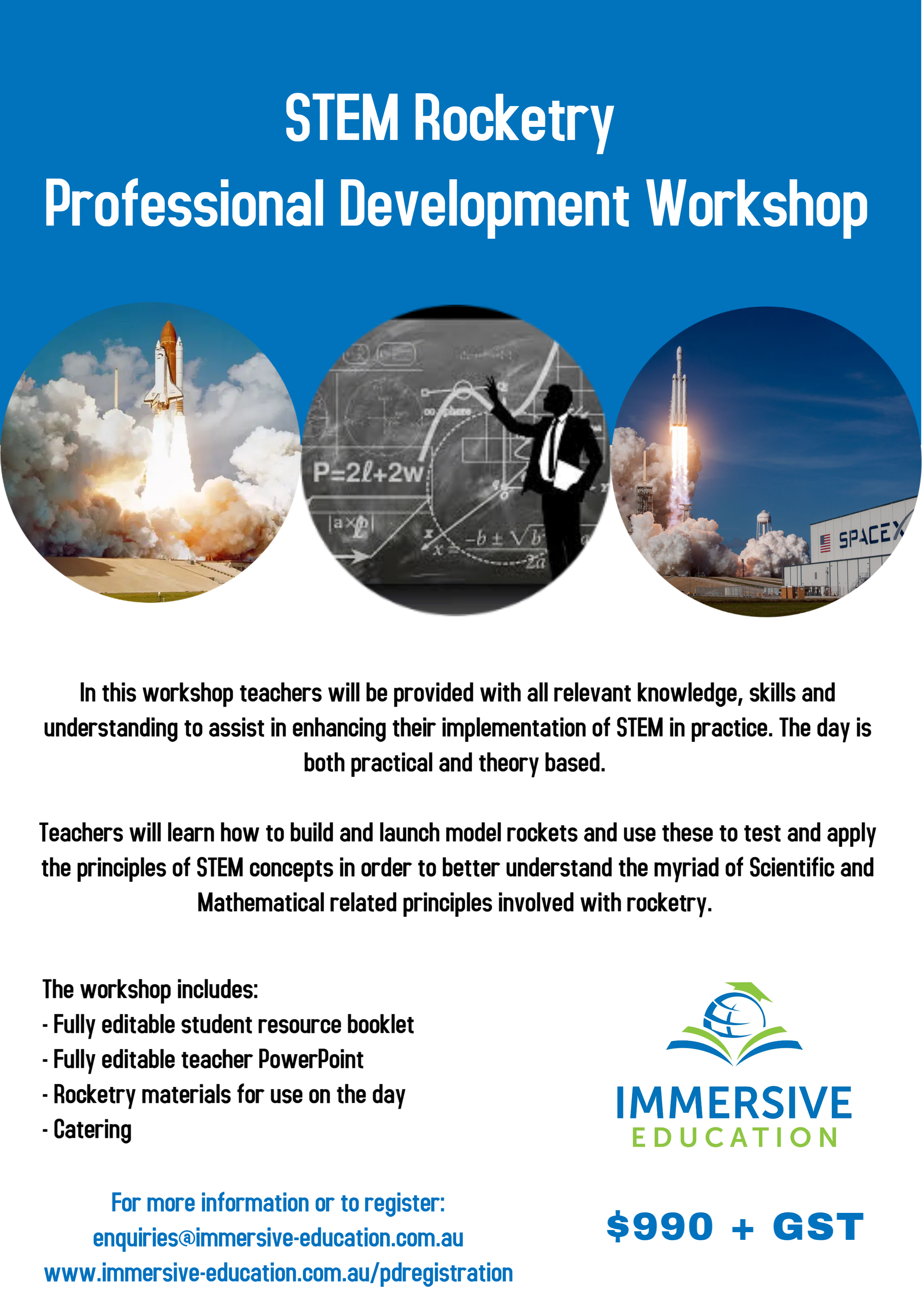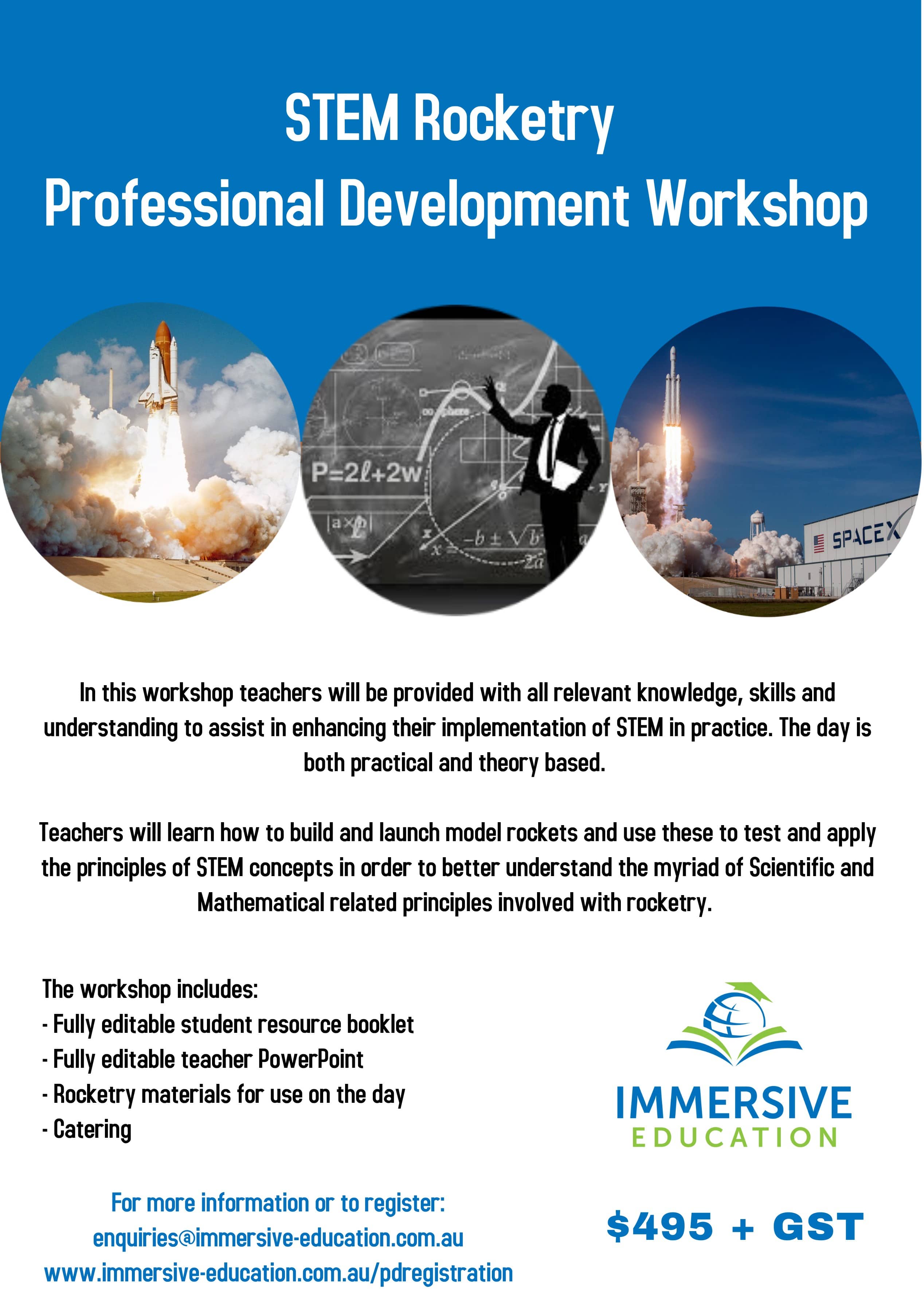 Immersive Education is pleased to offer the following professional development workshops for teachers, laboratory technicians and educational support staff.